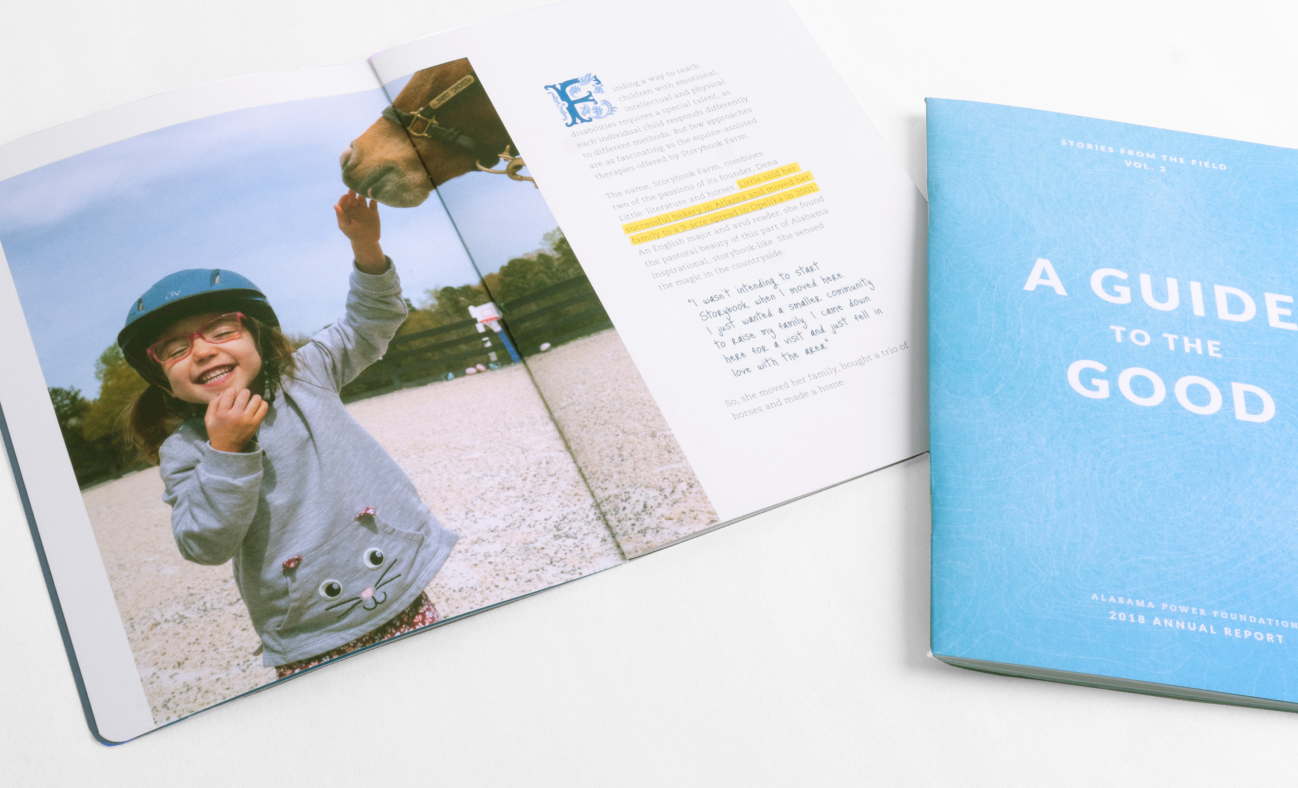 These are the accounts of the people and organizations who do good in our state. The Alabama Power Foundation calls this book an annual report. However, unlike a traditional annual report, theirs proudly shares the achievements of those organizations to whom they lend our support. Support that is more than just a check, but a true partnership. Because to the Alabama Power Foundation, there is no better measurement of their success than the success of its partners.